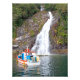 Un bateau de pêche photographié sur fond de cascade ; le fjord Quintupeu, Patagonie du Nord, Chili - un beau coin de l'Amérique du Sud où les Andes plongent dans l'océan Pacifique. [Nos photos de voyage et nos modèles sont disponibles comme cadeaux pour la maison, cartes, puzzles de scie, mur art et plus]