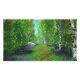 Un sentier surélevé qui serpente à travers la forêt de bouleaux par une journée ensoleillée d'été. A l'ombre des arbres, on trouve des tapis de bleuets dans les tons bleu et violet qui contrastent avec le vert printanier de l'herbe et des bouleaux.