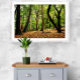 Découvrez la beauté majestueuse de Deep Woods dans sa gloire d'automne. Ce paysage peint capture une forêt sereine où des troncs d'arbres sombres et imposants encadrent une vue brillante du feuillage d'automne. La lumière aux applis de soleil filtre pour éclairer un épais tapis de feuilles tombés dans des teintes orangées, rougeâtres et dorées, créant une scène tranquille et atmosphérique. Parfait comme décor de mur rustique, ce bel imprimé d'art (ou imprimé de toile) a la texture et la profondeur d'un tableau à l'huile ou d'une oeuvre impressionniste. C'est un endroit idéal pour apporter l'atmosphère confortable de la saison d'automne, la tranquillité des bois et l'art de la nature dans votre salon, cabine, ou maison de ferme. Un cadeau parfait pour les amoureux de la nature.