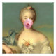 Remix vintage de pop art d'une jeune femme avec une gomme à bulle rose sur son visage.