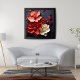 Cette magnifique oeuvre d'art présente un bouquet vibrant de fleurs rouges et blanches, dont des pivoines, des roses, des pavots et des dahlias, contre un arrière - plan noir spectaculaire. Les couleurs audacieuses et les détails réalistes créent un point de convergence captivant qui ne manquera pas d'agrémenter n'importe quelle pièce. Ce magnifique design floral est disponible sur une variété de produits, ce qui en fait la façon parfaite d'ajouter une touche d'élégance à votre maison ou bureau.