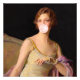 Oeuvre d'art pop d'un remix peinture vintage d'une femme en jaune soufflant une gomme à bulle rose.