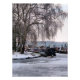 Une scène photographique hivernale enneigée avec des bateaux étroits sur le canal gelé.
