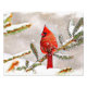 Cardinal mâle perché dans un pin rempli de neige par un froid jour d'hiver. Cette image a été prise par Debbie Quick of Debs Creative Images. Pour voir d'autres photographies de Debbie, visitez son site Web à l'adresse suivante : www.debscreativeimages.com