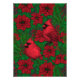 Motif de Noël dessiné à la main avec des oiseaux cardinaux, des fleurs de poinsettia, des baies d'hiver et des branches de sapin