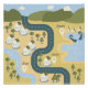 Carton carte en style plat dessiné avec des points de repère, montagnes, route, mer, rivière, forêt et maisons