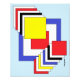 Cette oeuvre géométrique abstraite de Richard H. Fay présente un tableau de carrés dans les couleurs primaires du rouge, du bleu et du jaune, ainsi que du noir et du blanc.