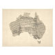 Une carte de l'Australie faite à partir d'un collage de vieilles et vintages partitions, y compris quelques partitions manuscrites et des notes, sur un arrière - plan de style antique.