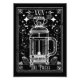 Grunge carte tarot design pour les amateurs de café! La presse, La presse française. Illustrations blanches et noires avec un café de presse français, des haricots de café, une tasse de café et des mains squelettes.