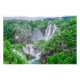 Peinture à l'huile de grandes chutes d'eau dans le parc national des lacs Plitvice, Croatie. Cascade de deux grandes cascades en été. Paysage de chute d'eau de la forêt de montagne.