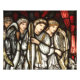 Quatre êtres angéliques s'apprêtent à avancer. Vitrail d'art vintage de Burne-Jones et William Morris.