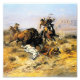 Charles (CM) Russell, le "cowboy artiste", a créé plus de 2 000 peintures de cowboys, indiens et paysages dans l'ouest des États-Unis. Il vécut et travailla parmi les cowboys et la tribu des Blood Indian dans ses plus jeunes années. Ce tableau s'appelle "Indian Buffalo Hunt" et représente un groupe de chasseurs indiens à cheval s'enfuyant sur un troupeau de buffles.