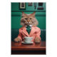 Chat de bengale glamour dans un costume rose élégant buvant du café dans un bar