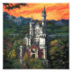 Château Schloss Neuschwanstein des gravures, des affiches, des cadeaux et des accessoires présentent notre art original de Traci Van Wagoner du célèbre palais de la renaissance gothique du XIXe siècle, assis sur une colline accidentée au-dessus du village de Hohenschwangau près de Füssen dans le sud-ouest de la Bavière, en Allemagne au coucher du soleil. Cette belle peinture de château est un cadeau parfait pour tous ceux qui aiment les châteaux, les palais, l'imaginaire et l'art coloré. Le palais est apparu en tête dans plusieurs films et a été l'inspiration pour le château de beauté dormante de Disneyland et plus tard, des structures similaires.