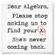 Impression Photo Chère Algebra S'Il Vous Plaît Arrêtez De Nous Dema