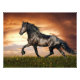 Un cheval majestueux s'élève à travers un champ au coucher du soleil, projetant une lueur spectaculaire dans le ciel. La scène capture la beauté et l'énergie du cheval sur un fond de couleurs vives.