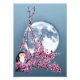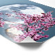 Un tableau d'une Chouette d'Écorce perché sur la branche fleurie d'un arbre fruitier, avec une Pleine lune dans l'arrière - plan. Copyright de l'oeuvre ©2018 Kimberly J Tilley.