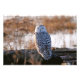 Photo d'une chouette neigeuse qui s'enfonce. Le hibou est assis sur un morceau de bois flottant sur la plage entouré de végétation séchée. Cette image de hibou peut être customisée avec votre propre texte dans le style de votre choix.