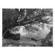 This black and white seascape photogrpah fea tree overhanging the water along the shore at Lake Erie. Les Coast Rocky aux boulders des différents sizes des waters The leaves have a feathery appearance as the tree trunk, branches and leaves, lying horizontal, overhang the water. This scenic landscape photograph quelque chose taken along the coast of lake Erie, Ohio.