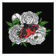 Illustration vectorielle dessinée à la main du papillon cinabre sur un bouquet de fleurs de pivoine