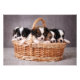 Ce joli design comporte une portée de cinq chiots assis dans un panier.