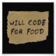 Coder à la recherche de travail...codera pour la nourriture. L'argent est facultatif. Idéal pour les programmeurs, les informaticiens et les ingénieurs à la recherche d'emploi, de nourriture, ou juste un grand rire.