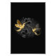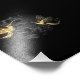 Colibris de bijoux en noir et or sur arrière - plan gris décoré de plantes. Bijoux. Oiseau doré. Oiseau d'or.