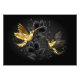 Colibris de bijoux en noir et or sur arrière - plan gris décoré de plantes. Bijoux. Oiseau doré. Oiseau d'or.