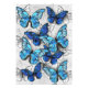 Vertical composition of réalistes, blue and white morpho butterflies on gray textured background. Morphine bleu.