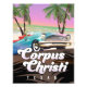 Affiche de vacances Corpus Christi Texas dans un magnifique style vintage avec une vieille voiture vintage.