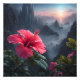Ce tableau vibrant capture la beauté d'une fleur d'hibiscus rose en pleine floraison sur fond de montagnes majestueuses au coucher du soleil. Les teintes douces du rose et de l'orange créent une atmosphère paisible et sereine, ce qui en fait une pièce d'art parfaite pour n'importe quelle maison.