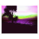 Un coucher de soleil tropical numériquement rehaussé. Plage aux palmiers violets