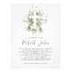 Photographie de prière baptisée. Cette conception présente une illustration du feuillage vert et or en aquarelle. Sur le feuillage vert il y a une image de croix.