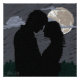 Un homme et une femme debout ensemble dans une étreinte aimante sous la lumière lune vive près d'une forêt. Art de Briana Blair.