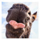 Cette photo montre un cheval se rapprochant un peu trop de mon objectif de caméra. Vous obtenez une bonne vue de la bouche et de la langue du cheval de ce cheval amical. Je ne sais pas si c'était des baisers à cheval ou il pensait que mon appareil photo pouvait avoir des friandises. Le bouton parfait pour tous les amateurs de cheval avec un sens de l'humour.