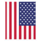 Drapeau national avec 50 étoiles blanches sur un canton bleu avec un champ de 13 bandes alternées, 7 rouges et 6 blanches. Les 50 étoiles représentent les 50 États de l'union et les 13 États originaux.