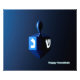 Un rêve moderniste bleu métallique contre un arrière - plan sombre et nocturne. Deux des lettres hébraïques trouvées sur un dreidel, une nonne et un shin, brillent brillamment. Le texte "Happy Hanoukka" apparaît également en bleu et blanc brillant.