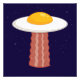 Illustration vectorielle d'un délicieux côté ensoleillé vers l'OVNI frit avec un délicieux faisceau de tracteur tranche de bacon. Mots-clés : oeuf, bacon, petit-déjeuner, OVNI, alien, ensoleillé, côté, dessin animé, espace, extraterrestre, nourriture, mignon, jaune, science, fiction, martien, humour, viande, porc, enlèvement