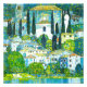 Photo Impression représentant l’église de Gustav Klimt à Cassone (1913). Une belle église italienne est entourée d'arbres verts au bord des eaux bleues. Un cadeau merveilleux pour les amateurs d'Art Nouveau et les amateurs d'art autrichien !