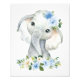 Impression Photo Elephant, Safari, Fleurs Bleues, Garçon Nursery