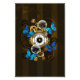 Composition de l'horloge ronde steampunk avec cadran romain noir, décoré avec des engrenages or et laiton, papillons Morpho bleu et lentilles endommagées sur arrière - plan rayé brun. Style Steampunk.