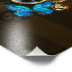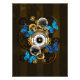 Composition de l'horloge ronde steampunk avec cadran romain noir, décoré avec des engrenages or et laiton, papillons Morpho bleu et lentilles endommagées sur arrière - plan rayé brun. Style Steampunk.