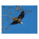 Un aigle chauve déterminé se lance d'une branche d'arbre dans un ciel bleu vif.