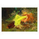 Impression photo représentant le tableau d’Arthur Wardle A Fairy Tale (1895). Une jeune femme aux longs cheveux rouges porte une robe jaune et dort dans une forêt verte à côté du chevreuil, du lapin et du paon. Un beau cadeau pour les amateurs de contes de fées et les amateurs d'art anglais !