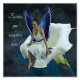 Jolie fée en bleu perché sur la lune Flower et les mots : "Les fées sont les bienvenues ici!" Beau cadeau pour fée ou fan d'imaginaire. Art original de Cherie Haines.