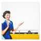 Image amusante d'une ménagère qui montre fièrement son lave-linge et son sèche-linge. Couleurs rétro lumineuses.