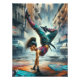 Le design montre une scène animée dans laquelle une danseuse de break se produit en pleine balançoire dans la rue. Le personnage principal, la danseuse de rupture, est au milieu d'un puissant support à main.