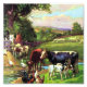 Une photographie dans le domaine public d'une scène agricole vintage tirée d'un livre d'histoire biblique pour enfants. Les animaux comprennent des vaches, des chevaux, des moutons, des canards, des poulets, un coq et une mule.