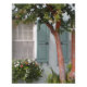 Des fleurs roses et blanches gaies fleurissent dans un coffret entouré de persiennes de seagreen dans une maison de Charleston. (Photo prise en 2011.)