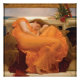 Flaming June by Frederic Leighton, oil on canvas 1895, est un tableau d'une figure féminine drapée au repos, reposant dans un intérieur élégant en marbre, la lumière naturelle du soleil couchant éclairant la scène dans une gamme de couleurs chaudes et brillantes comme l'or liquide. L'élégante figure classique et les contours lisses évoquent les nymphes et les figures drapées de la sculpture de la Grèce classique, tandis que l'inclusion du toxique plante Oleander ci-dessus rappelle romantique le lien entre le sommeil et la mort. Flaming June est la peinture la plus célèbre de l’artiste parmi beaucoup qui sont en train de regagner la reconnaissance après une longue période de négligence de l’art de l’époque victorienne. Frédéric Leighton (1830 - 1896) était peintre et sculpteur anglais associé à la Fraternité britannique des artistes préraphaélites. Après avoir étudié à Londres et sur le continent européen, et vécu pendant un temps à Paris, Leighton s'installe à Londres où il commence à produire des oeuvres basées sur des sujets classiques, bibliques et historiques. Leighton, associé et président de la Royal Academy, a participé à la rénovation de la sculpture britannique et a reçu la Légion d'honneur française. Le mouvement pré-Raphaélite a pris part à des couleurs brillantes, comme des bijoux, des détails complexes et des styles de composition de l'art de la Renaissance Quattrocento, que Leighton a imprégné d'influences des écoles de romantisme et de réalisme. Leighton est décédé comme le seul artiste à recevoir un peerage, et aujourd'hui sa maison se tient comme un musée à Londres.